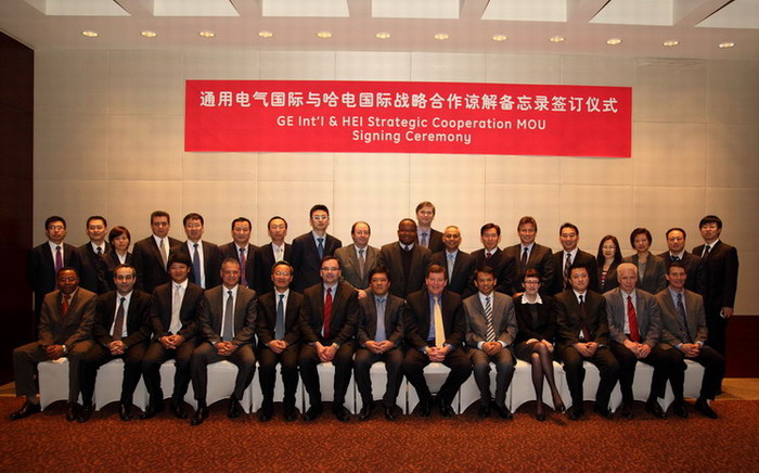 2013年4月10日,哈電國際與美國通用電氣發(fā)電和水處理集團(tuán)在北京共同簽署了雙方戰(zhàn)略合作諒解備忘錄,全面開啟雙方戰(zhàn)略合作。 哈電國際董事長、總經(jīng)理郭宇,副總經(jīng)理楊慶利,副總經(jīng)理王世民和通用電氣公司副總裁、發(fā)電和水處理集團(tuán)全球銷售總裁James N Suciu先生,通用電氣公司大中華區(qū)總裁夏智誠先生、全球項目運營總裁John Reinker先生、全球項目運營副總裁Brian P Ray先生、EPC業(yè)務(wù)總經(jīng)理Karine Brosse女士,中國EPC業(yè)務(wù)總經(jīng)理楊成文先生以及通用電氣公司全球各地區(qū)銷售高管等領(lǐng)導(dǎo)出席了簽字儀式。哈電國際副總經(jīng)理王世民、通用電氣公司發(fā)電和水處理EPC業(yè)務(wù)總經(jīng)理 Karine Brosse女士代表雙方簽署了戰(zhàn)略合作諒解備忘錄。